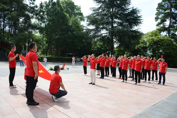 在紅軍山(遵義紅軍山烈士陵園)紀(jì)念碑前,全體黨員向革命烈士們敬獻(xiàn)花圈、默哀致敬。面向鮮紅的黨旗,黨總支何書記帶領(lǐng)黨員們高舉右拳,再次重溫入黨誓詞,鏗鏘有力的宣誓聲響徹陵園。在“紅軍墳”前,聆聽了紅三軍團(tuán)參謀長(zhǎng)鄧萍的故事和紅軍菩薩《衛(wèi)生員小紅的故事》,紅軍與群眾魚水情深的故事深深打動(dòng)了在場(chǎng)的每一個(gè)人。大家一邊回顧歷史,一邊聯(lián)系當(dāng)下,紛紛激動(dòng)地抒發(fā)自己內(nèi)心涌動(dòng)的激蕩情懷,并表露出將學(xué)習(xí)成果轉(zhuǎn)化為具體行動(dòng)的決心。