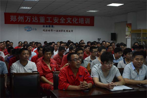 以人為本,打造幸福萬達,是萬達重工安全管理和安全文化建設的一個重要的原則。為提高員工安全意識,確保安全生產(chǎn),鄭州萬達重工股份有限公司講師團昨日在公司會議室舉辦了 “安全文化建設宣貫培訓”。此次培訓由講師團執(zhí)行團長(工會主席)于江山授課,會場座無虛席。