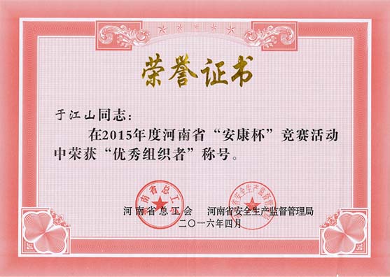 8月16日,河南省總工會(huì)與河南省安全生產(chǎn)監(jiān)督管理局對(duì)2015年度“安康杯”競(jìng)賽先進(jìn)集體和個(gè)人進(jìn)行通報(bào)表彰,鄭州萬達(dá)重工股份有限公司繼2014年度獲得河南省“安康杯”后,再次榮獲2015年度省級(jí)“安康杯”競(jìng)賽先進(jìn)單位稱號(hào),股份公司工會(huì)主席于江山榮獲河南省“安康杯”競(jìng)賽活動(dòng)“優(yōu)秀組織者”榮譽(yù)稱號(hào)。