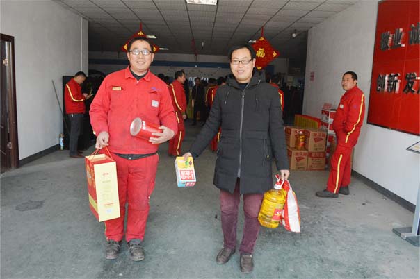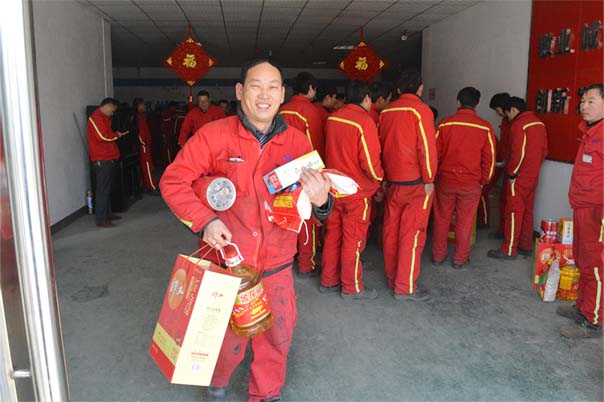 新年到,福利好,萬達(dá)家人臉上笑。2017年1月20日下午1點,鄭州萬達(dá)重工股份有限公司在行政大廳向全體在職員工發(fā)放春節(jié)禮品及禮金。