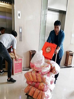 今天下午15:30,在萬達重工行政樓一樓大廳,人力行政中心為全體員工發(fā)放了載滿祝福的中秋禮品:每人一盒七星伴月月餅,祝福著萬達家人闔家團圓、幸福美滿;一桶多力葵花籽食用油、一袋大米,希望萬達家人家庭和諧、幸福美滿。以部門為單位進行領(lǐng)取,大家有的手提、有的肩扛、有的一起合力抬,萬達人個個臉上洋溢著喜悅之情,現(xiàn)場呈現(xiàn)出一片喜氣洋洋、熱鬧非凡的景象。