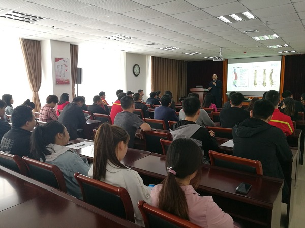 4月29日中午,針對公司生產(chǎn)崗位員工工作站立時間長等特點(diǎn),王剛老師專門為員工講授了一套健身鍛煉方法,使大家隨時隨地都能夠進(jìn)行練習(xí)鍛煉;4月30日,針對公司行政類崗位員工久坐、低頭伏案等特點(diǎn),王剛老師精心為大家講解了頸椎病、腰肌勞損、不良睡坐姿等因素使員工產(chǎn)生身體疾病及如何預(yù)防和調(diào)理的健康知識講座,并通過現(xiàn)場教學(xué)指導(dǎo)等方式,為大家上了一堂生動的健康管理和綜合調(diào)理健康講座。通過面對面地交流及傳授,讓廣大員工更透徹地領(lǐng)會了相關(guān)疾病的預(yù)防和保健,以及健康的行為和生活方式。