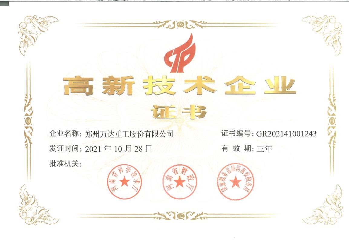 熱烈祝賀鄭州萬達(dá)重工股份有限公司順利通過“高新技術(shù)企業(yè)”認(rèn)定