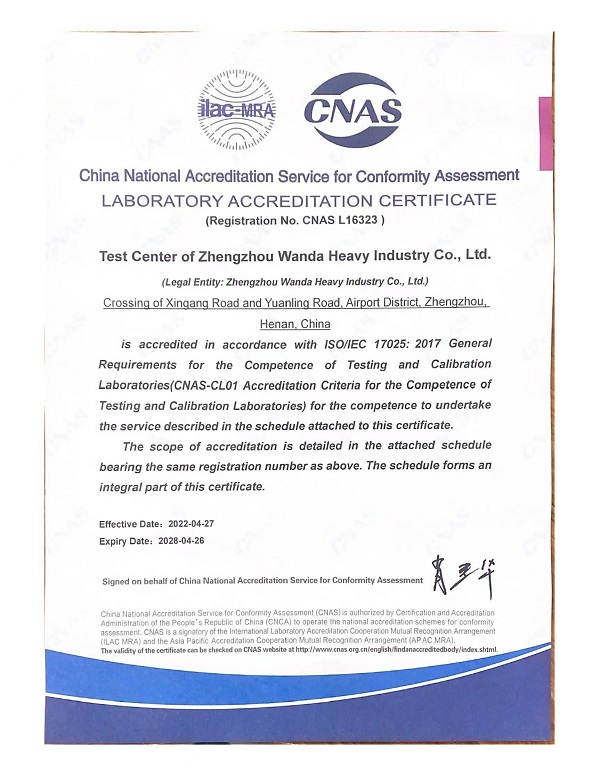 熱烈祝賀鄭州萬達(dá)重工股份有限公司順利通過CNAS實驗室認(rèn)定