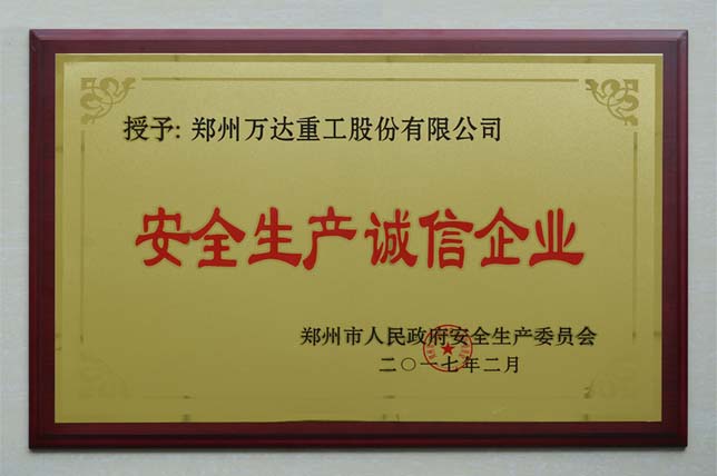 熱烈祝賀鄭州萬(wàn)達(dá)重工股份有限公司榮獲鄭州市安全生產(chǎn)誠(chéng)信企業(yè)