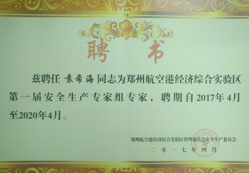 熱烈祝賀鄭州萬(wàn)達(dá)重工股份有限公司總工程師袁希海同志成為第一屆鄭州航空港 經(jīng)濟(jì)綜合實(shí)驗(yàn)