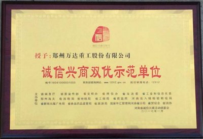 熱烈祝賀鄭州萬達(dá)重工股份有限公司及公司董事長、書記何清先生獲的“誠信興商雙優(yōu)示范單