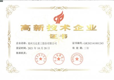 熱烈祝賀鄭州萬達重工股份有限公司順利通過“高新技術(shù)企業(yè)”認定